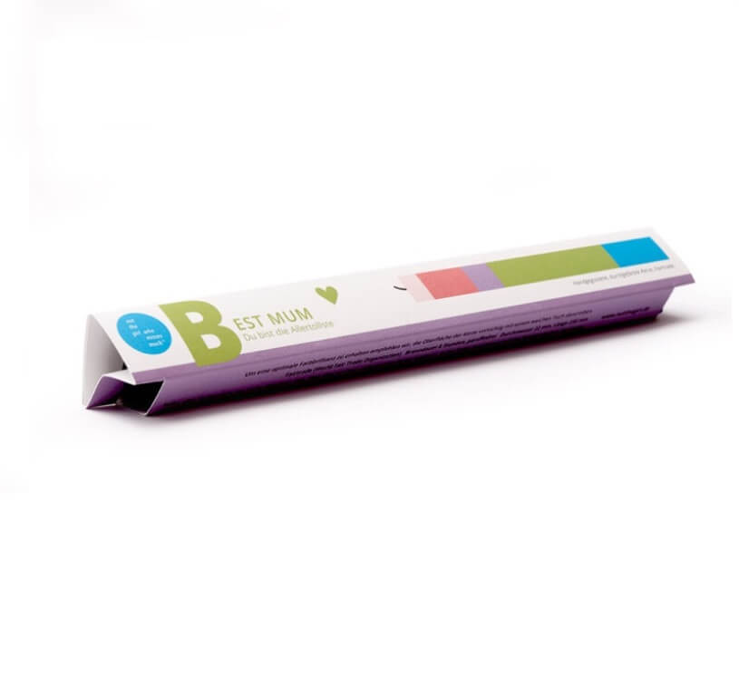 Minimalisitisch und in brillanten Farben haben wir in unseren Kerzen Farbcodes umgesetzt, die sich auf unterschiedliche Lebensaspekte beziehen. Jede Kerze wird so zur Botschaft und zum Geschenk, das Glückwünsche und Grüße übermittelt. Bei uns findet jedes Thema seine Kerze und jede Kerze ein neues Thema. Die Kerzen werden aus durchgefärbtem, pflanzlichen Wachs handgefertigt. Die Verpackungen, die in Hamburg klimaneutral auf FSC-zertifiziertem Designpapier gedruckt und weiterverarbeitet werden, sind zweisprachig: eine Seite auf Deutsch, die andere auf Englisch.