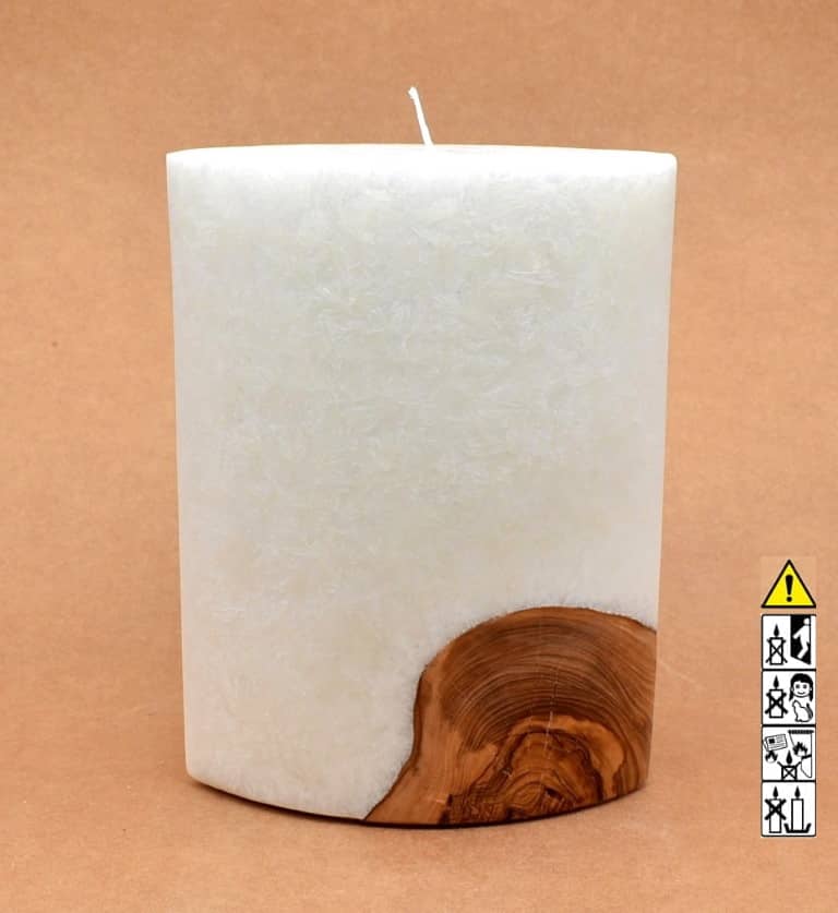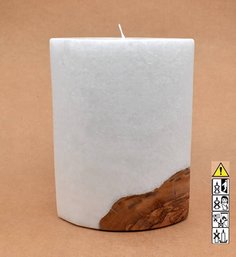 Ovale Kerze in Stearinoptik Kanten spitz 210 x 140 x 80 mit Holz / 1 x Docht.