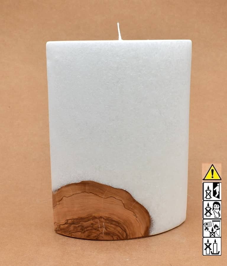 Kerze mit Holz Oval Kanten spitz 210 x 140 x 80 mm 1 x Docht. Nr.: 6