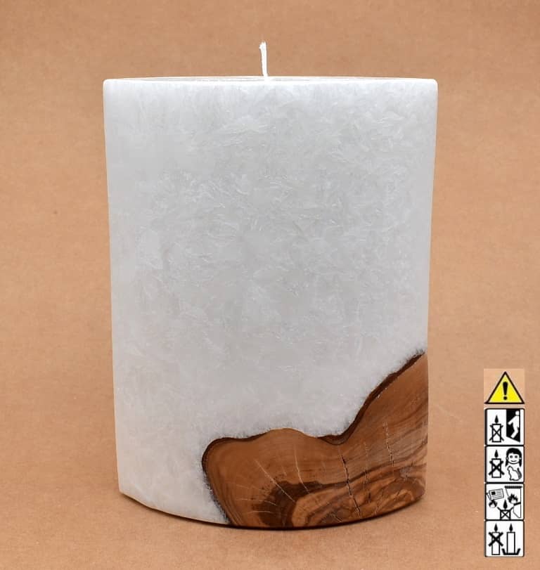 Ovale Kerze in Stearinoptik Kanten spitz 210 x 140 x 80 mit Holz / 1 x Docht.