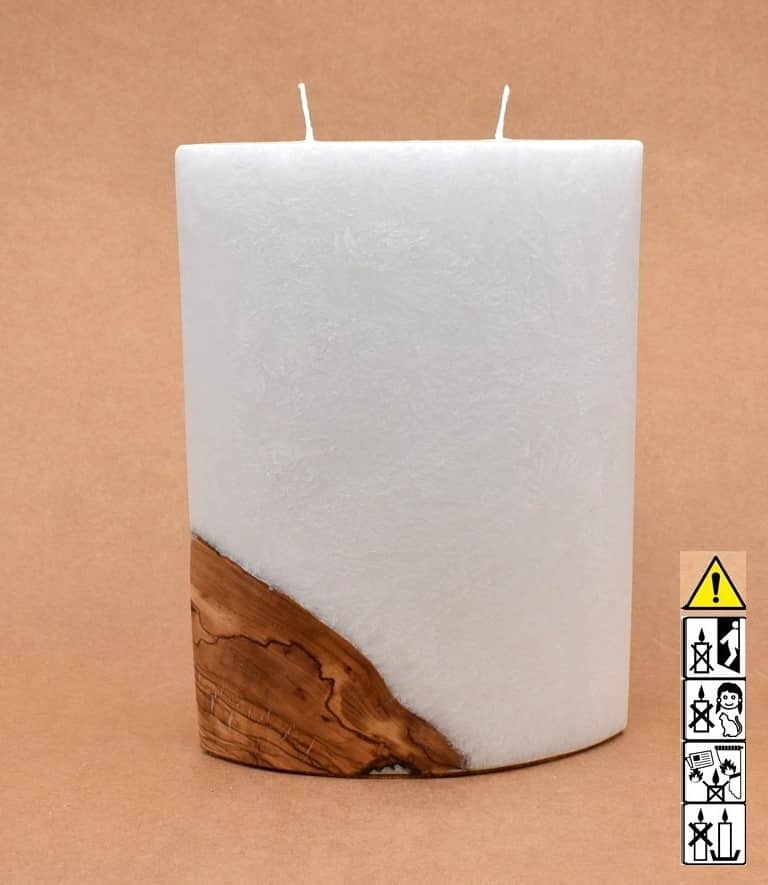 Kerze mit Holz Oval Kanten spitz 210 x 140 x 80 mm 2 x Docht. Nr.: 3