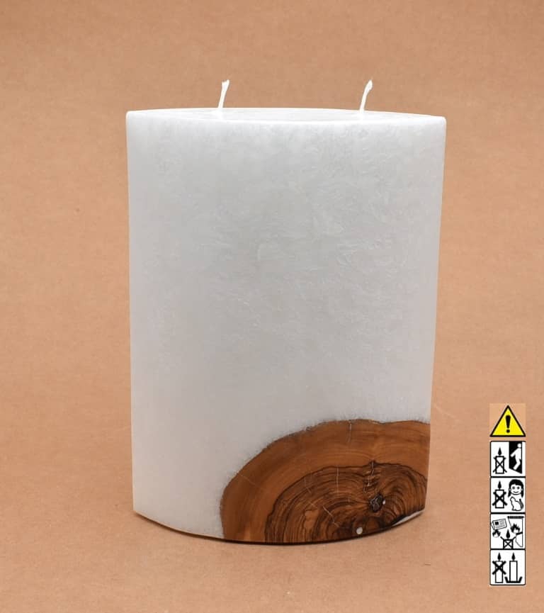 Kerze mit Holz Oval Kanten spitz 210 x 140 x 80 mm 2 x Docht. Nr.: 6