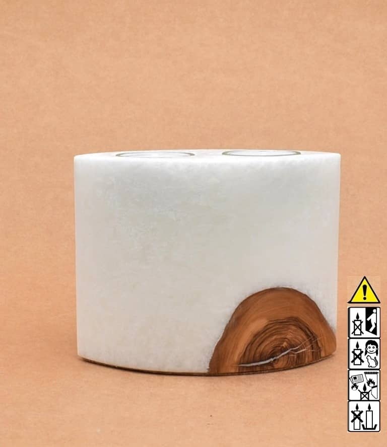 Kerze mit Holz Unikat Oval 80 x 140 x 120 mm mit 2 Teelichter Nr.: 5