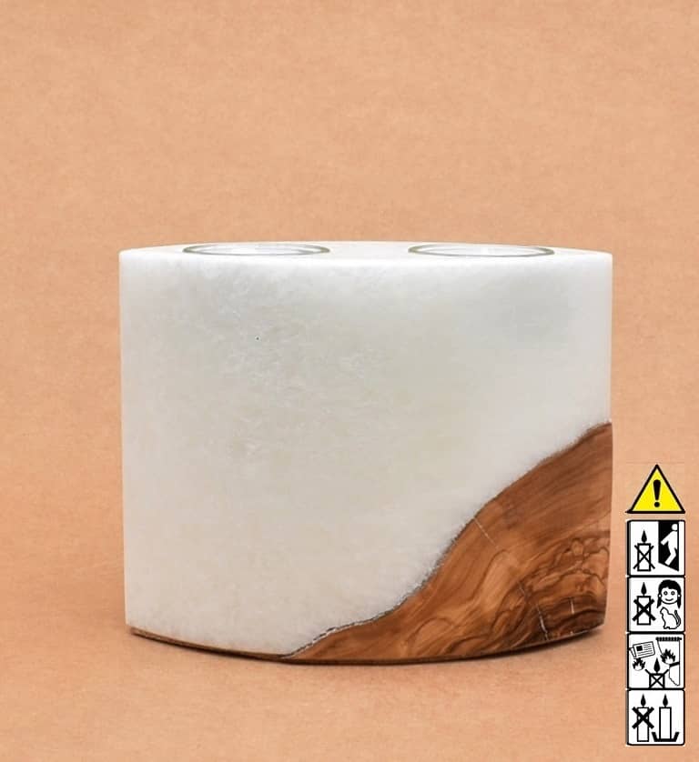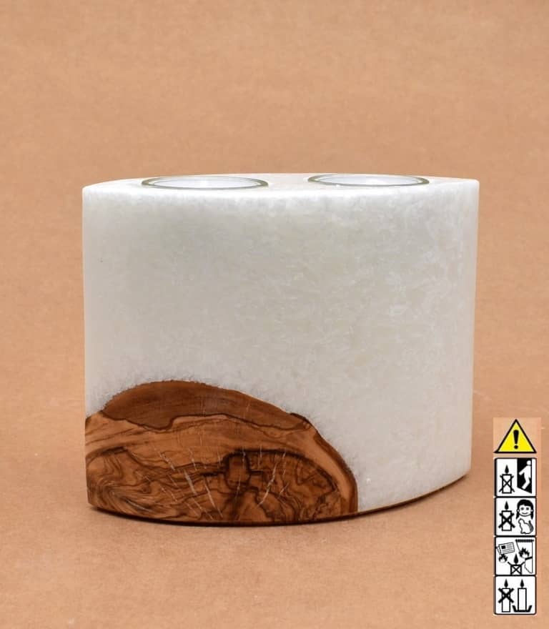 Kerze mit Holz Unikat Oval 80 x 140 x 120 mm mit 2 Teelichter Nr.: 6