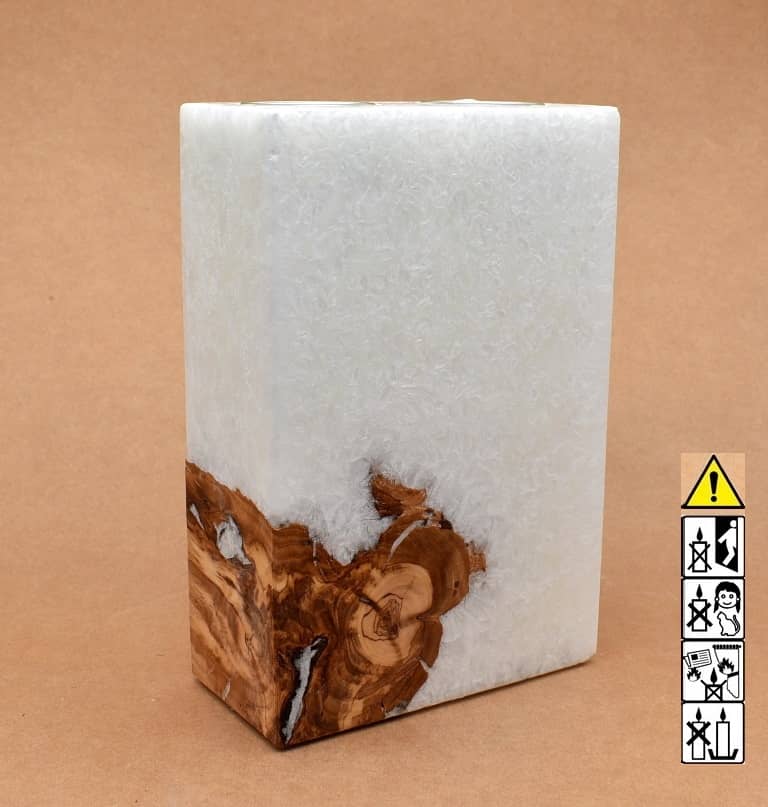 Kerze mit Holz Unikat Quader 140 x 70 x 210 mm 2 x Teelicht Nr.: 4
