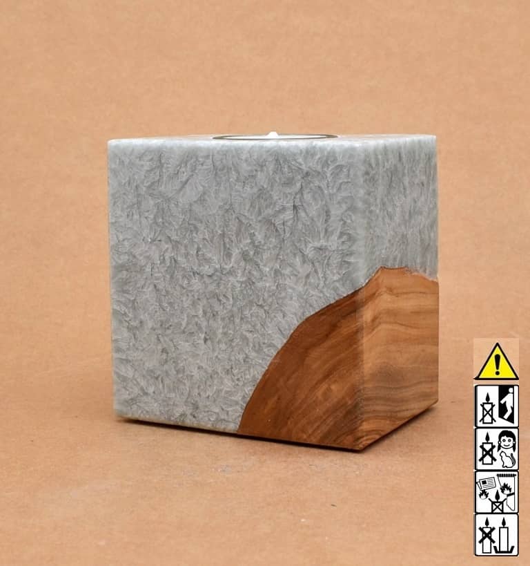 Kerze mit Holz Unikat Quader 70 x 100 x 100 mm 1 x Teelicht in sibergrau