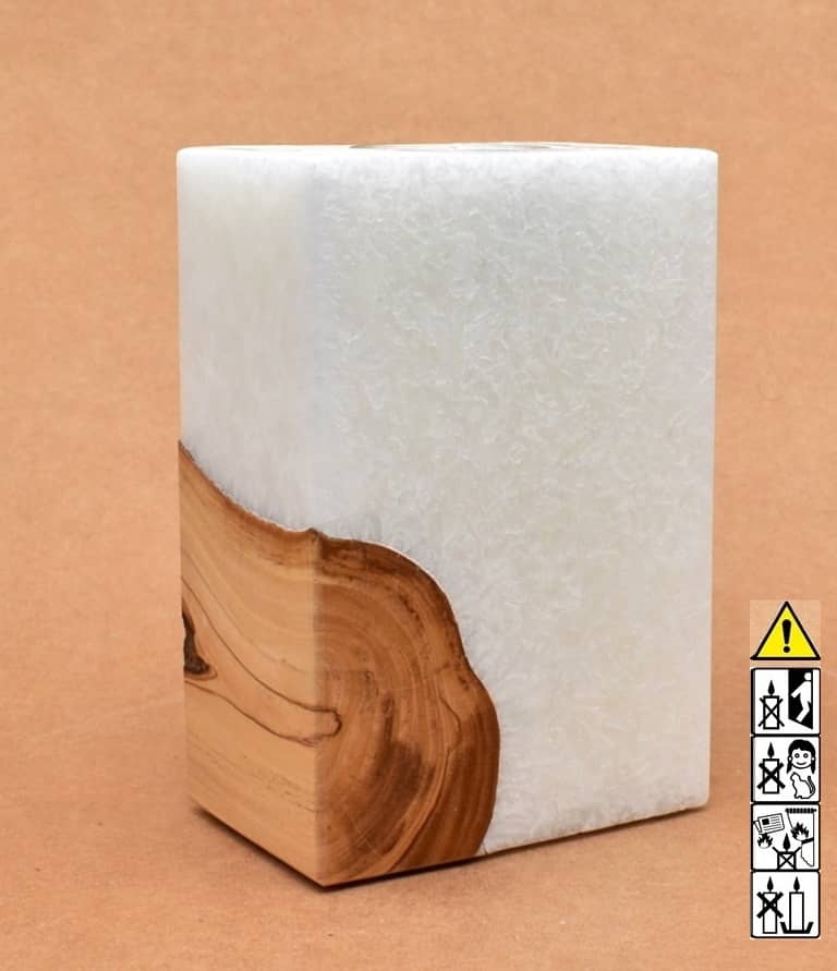 Kerze mit Holz Unikat Quader 70 x 100 x 150 mm mit 1 x Teelicht Nr: 4