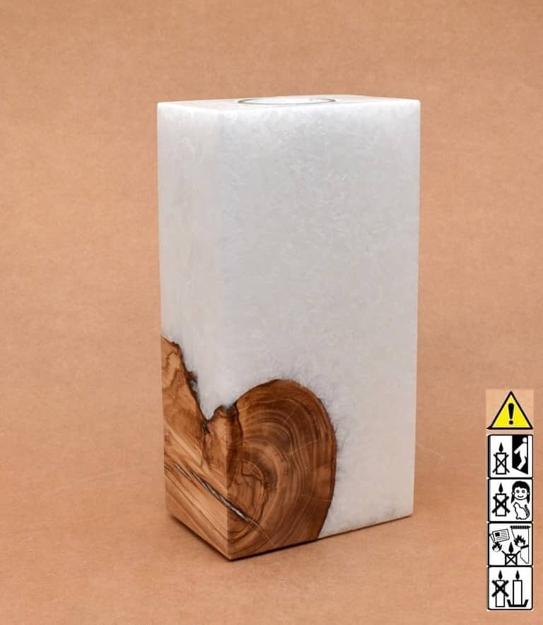 Kerze mit Holz Unikat Quader 70 x 100 x 200 mm mit Teelicht Nr.: 7