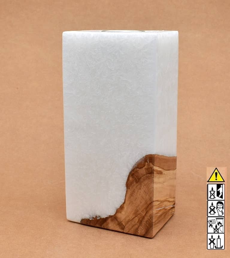 Eine einmalige Optik durch das Eingießen des Holzelementes, welches für sich schon ein Unikat ist.
