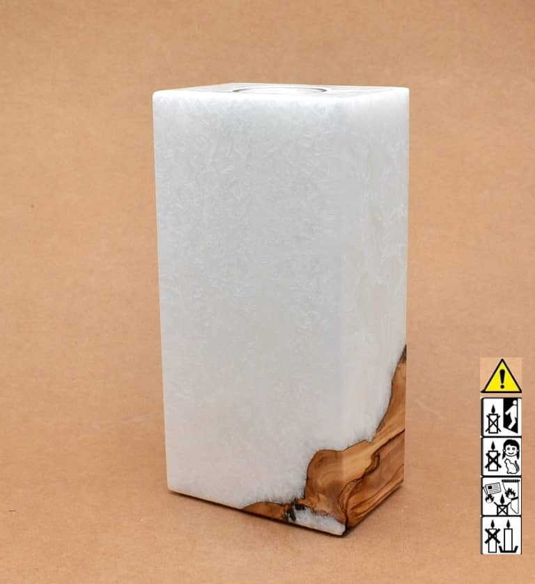 Quader Kerze in Stearinoptik 70 x 100 x 200 mm mit Teelicht mit 1 x Holz.