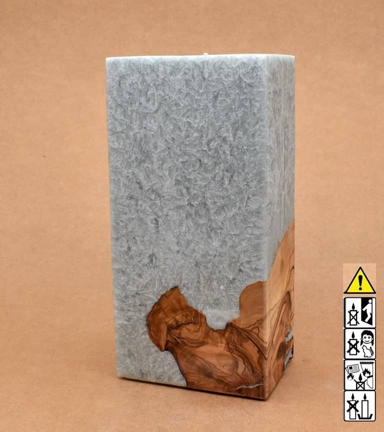 Kerze mit Holz Unikat Quader 70 x 100 x 200 mm mit Teelicht in silbergrau