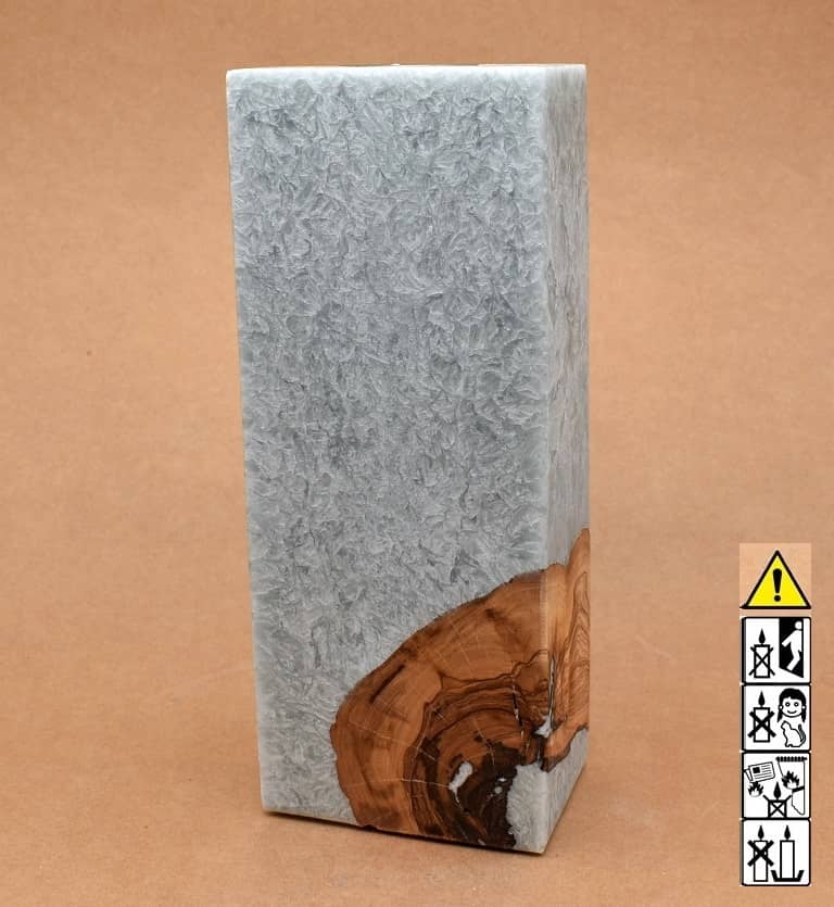 Kerze mit Holz Unikat Quader 70 x 100 x 200 mm mit Teelicht in silbergrau