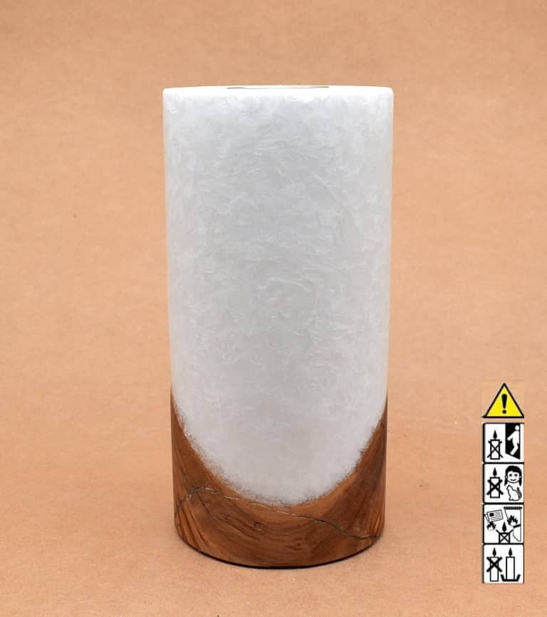 Runde Kerze in Stearinoptik 100 x 200 mm mit Teelicht und Holz.