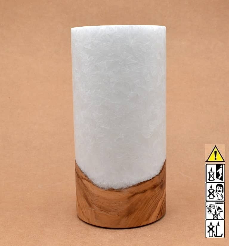 Runde Kerze in Stearinoptik 100 x 200 mm mit Teelicht und Holz.