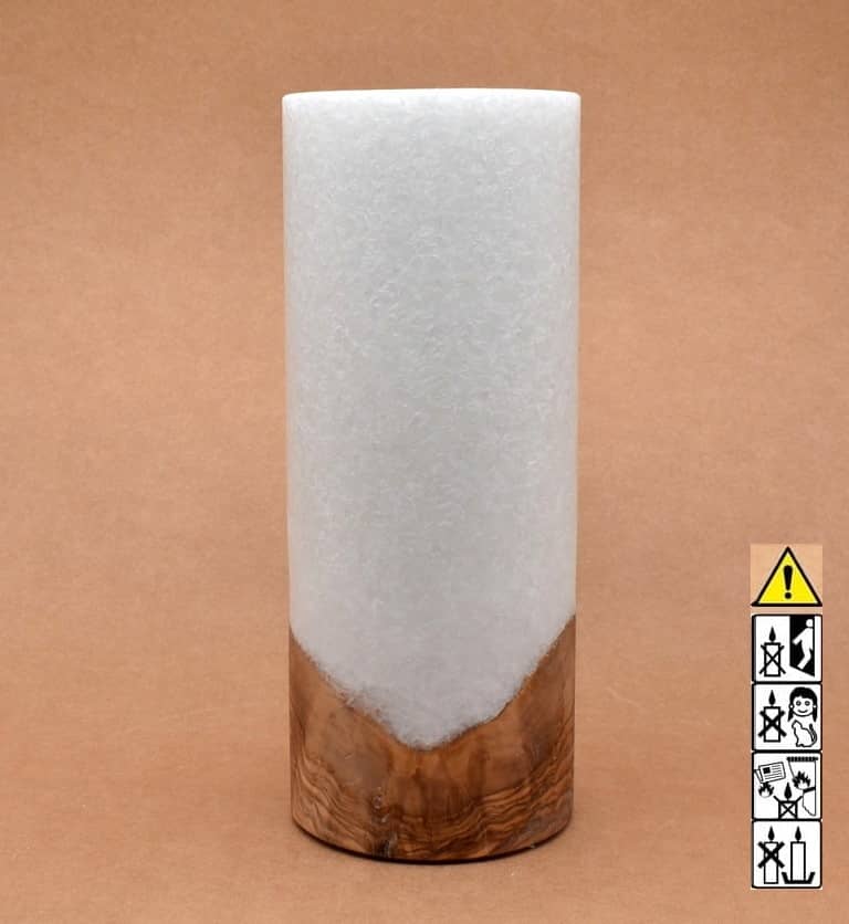 Runde Kerze in Stearinoptik 100 x 250 mm mit Teelicht und Holz.