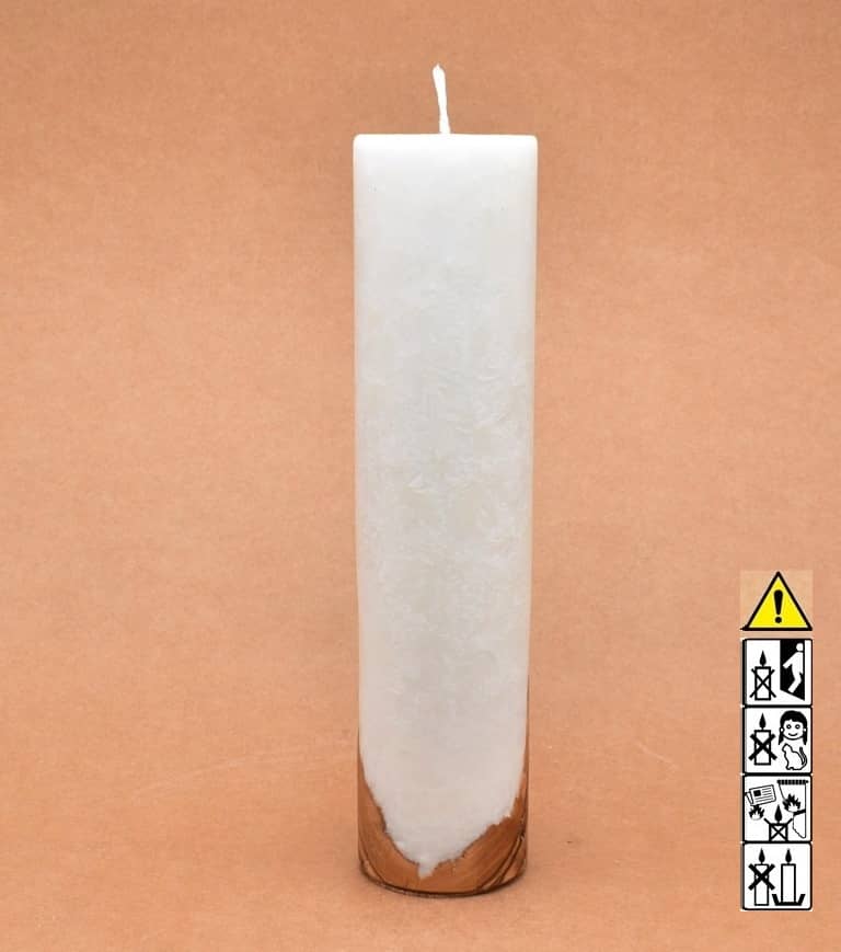 Runde Kerze in Stearinoptik 60 x 250 mm mit Holz und Docht.