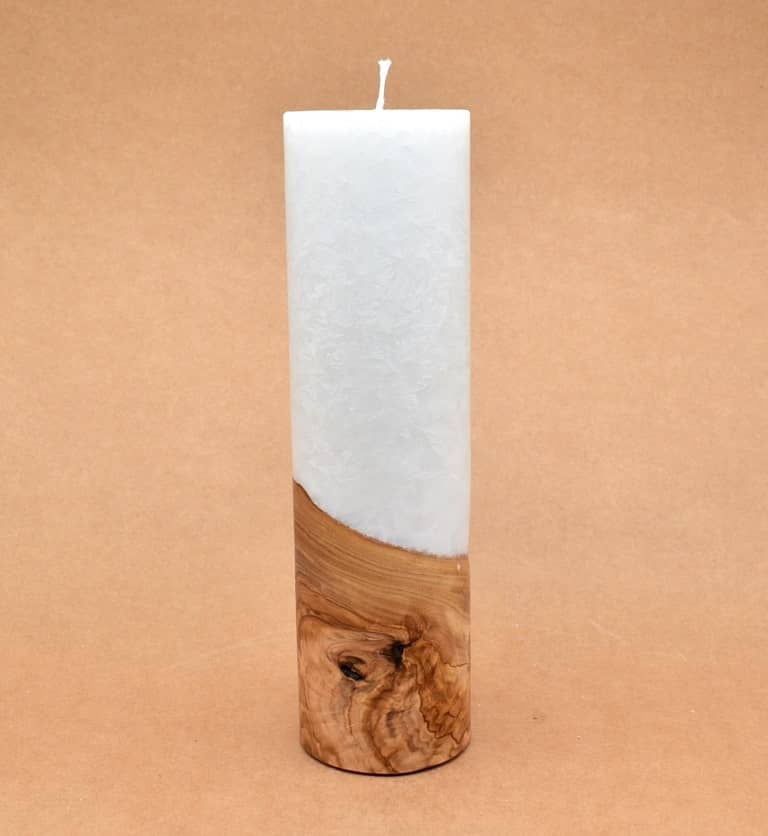 Jede Kerze mit Holz wird von Hand hergestellt und bearbeitet.