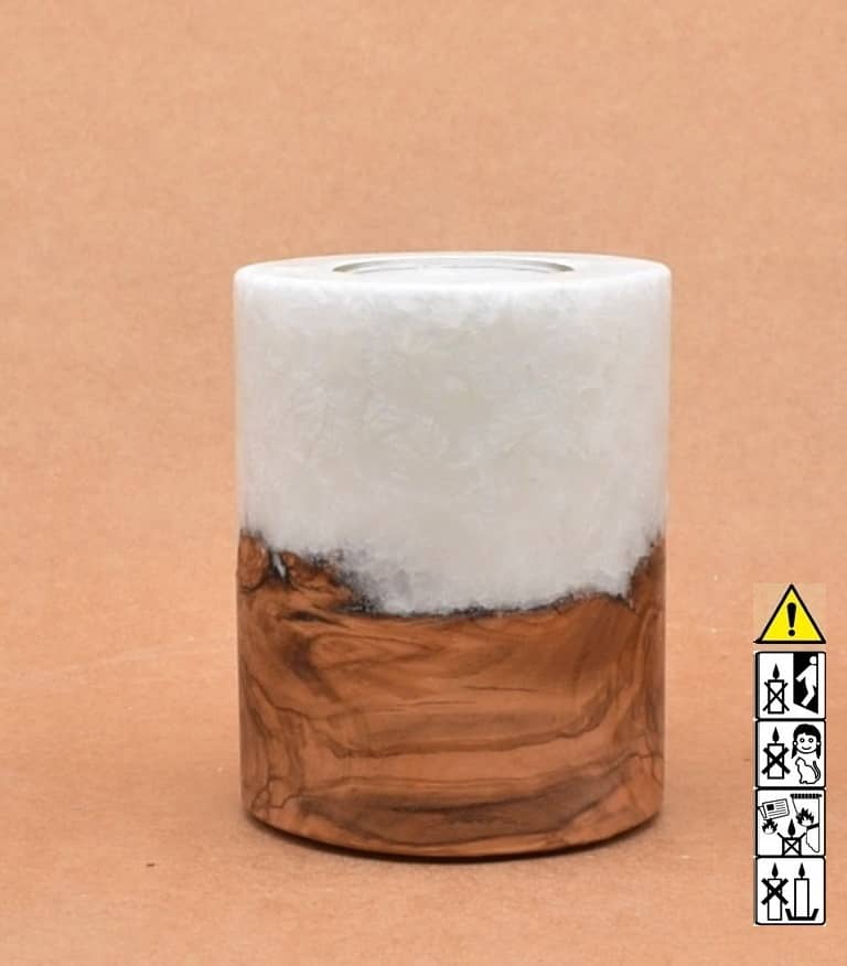 Runde Kerze in Stearinoptik 80 x 100 mm mit Teelicht und Holz.