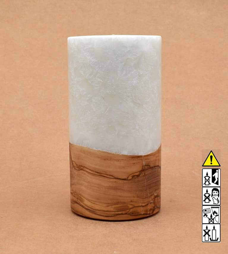 Runde Kerze in Stearinoptik 80 x 150 mm mit Teelicht und Holz.