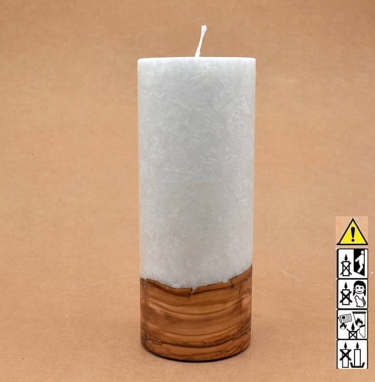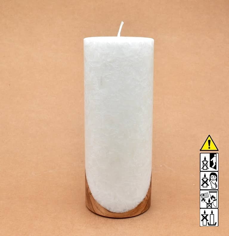 Runde Kerze in Stearinoptik 80 x 200 mm mit Docht und Holz.