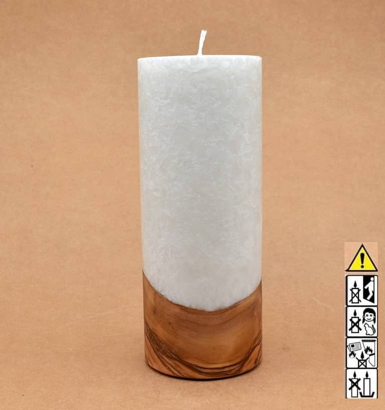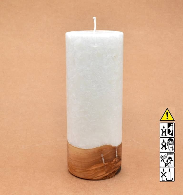 Runde Kerze in Stearinoptik 80 x 200 mm mit Docht und Holz.