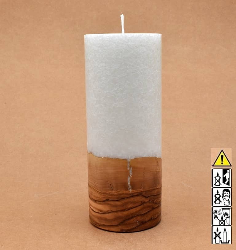 Runde Kerze in Stearinoptik 80 x 200 mm mit Docht und Holz.