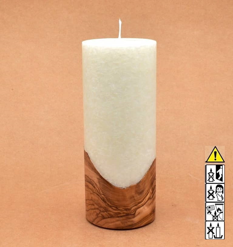 Runde Kerze in Stearinoptik 80 x 200 mm mit Docht und Holz.