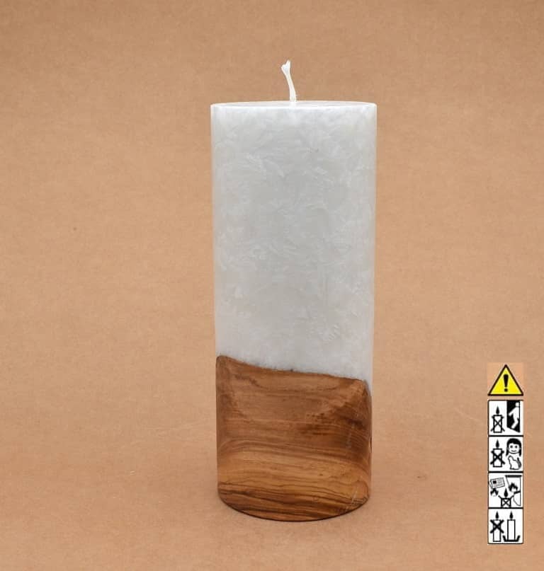 Jede Kerze mit Holz wird von Hand hergestellt und bearbeitet.
