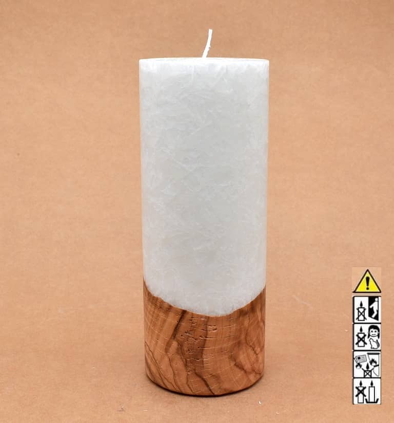 Runde Kerze in Stearinoptik 80 x 200 mm mit Docht und Holz.