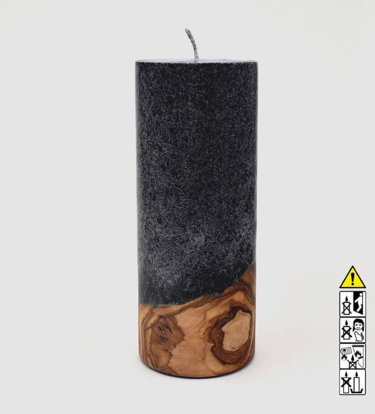 Kerze mit Holz Unikat Rund 80 x 200 mm mit Docht in schwarz