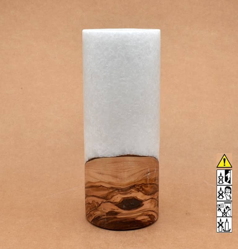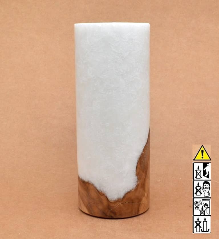 Runde Kerze in Stearinoptik 80 x 200 mm mit Teelicht und Holz.