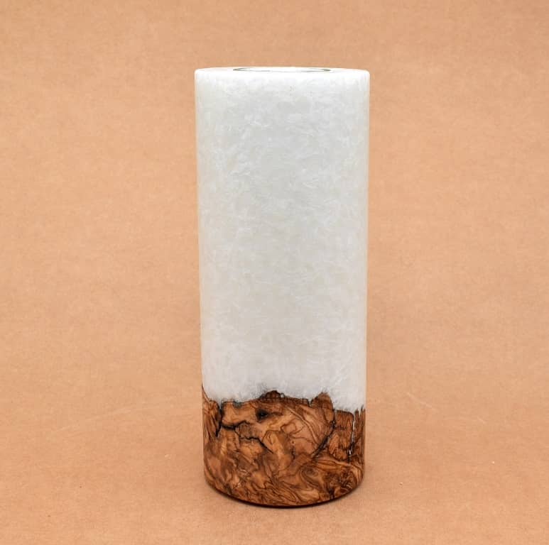 Kerze mit Holz Unikat Rund 80 x 200 mm mit Teelicht Nr.: 20