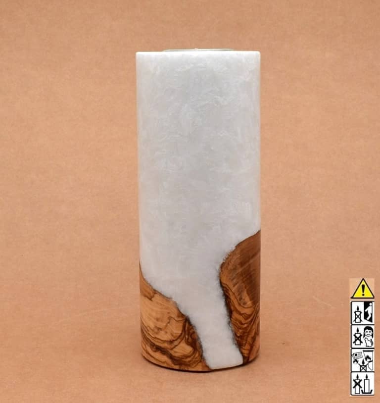 Runde Kerze in Stearinoptik 80 x 200 mm mit Teelicht und Holz.