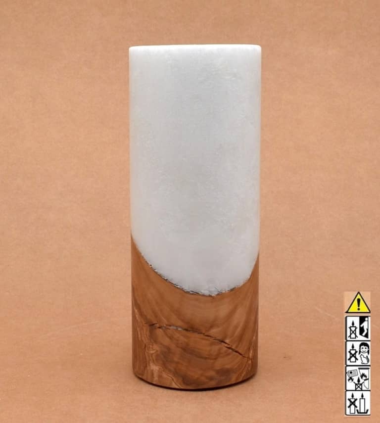 Runde Kerze in Stearinoptik 80 x 200 mm mit Teelicht und Holz.