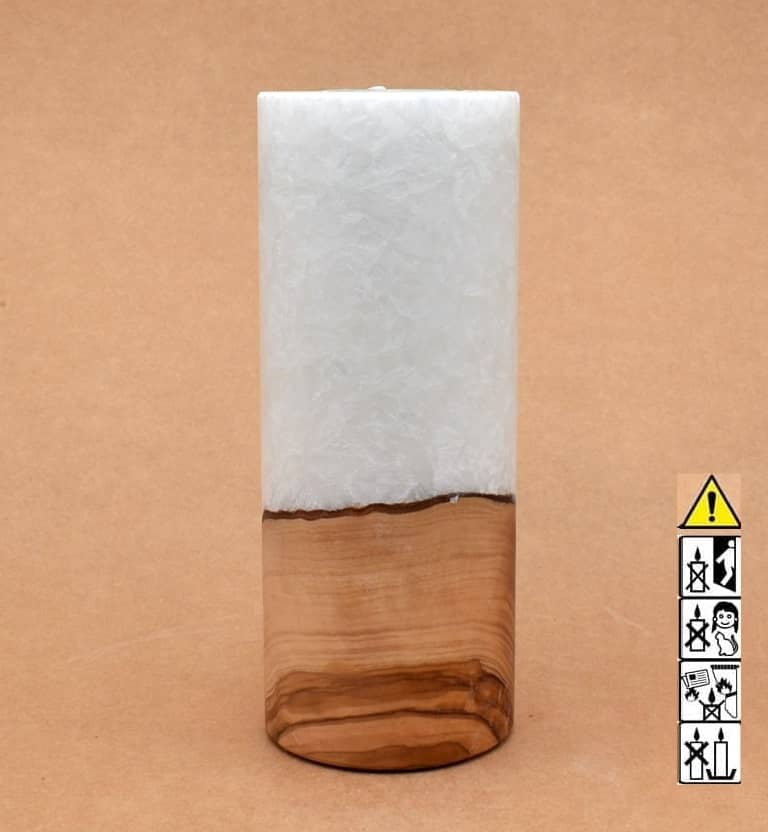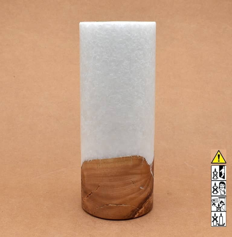 Runde Kerze in Stearinoptik 80 x 200 mm mit Teelicht und Holz.