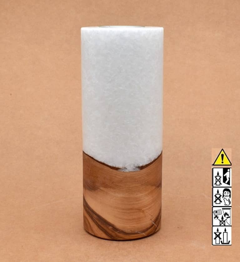 Runde Kerze in Stearinoptik 80 x 200 mm mit Teelicht und Holz.