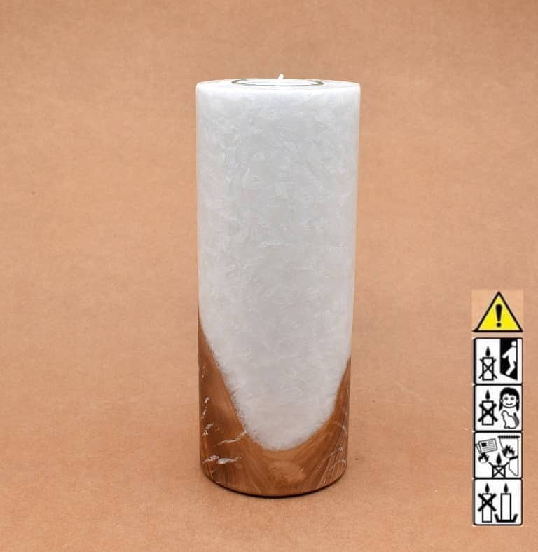 Runde Kerze in Stearinoptik 80 x 200 mm mit Teelicht und Holz.
