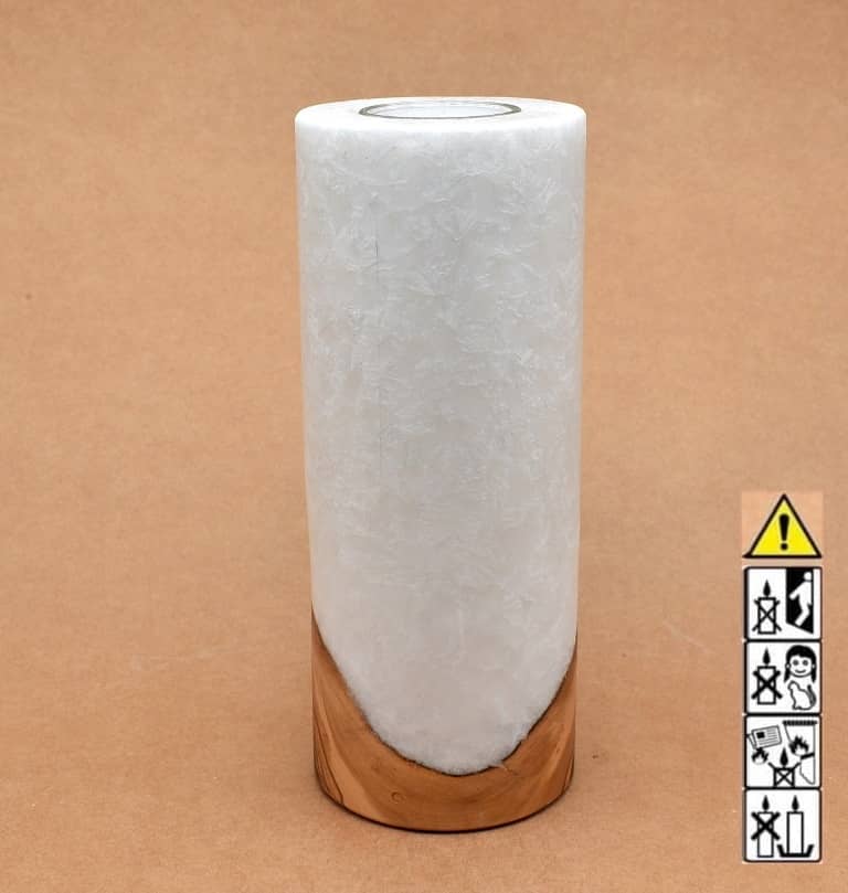 Runde Kerze in Stearinoptik 80 x 200 mm mit Teelicht und Holz.