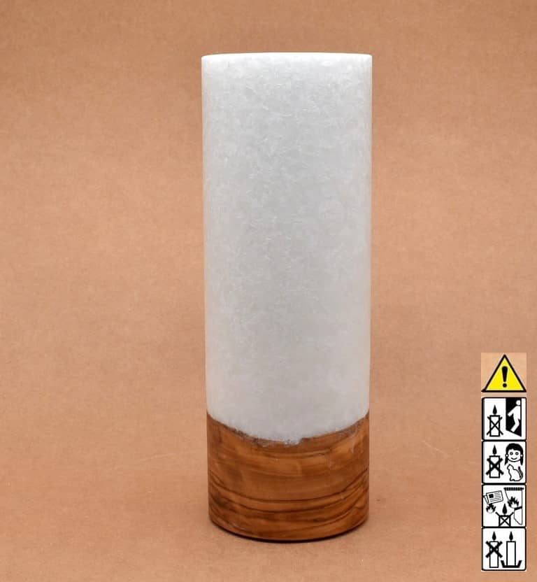 Runde Kerze in Stearinoptik 90 x 250 mm mit Teelicht und Holz.