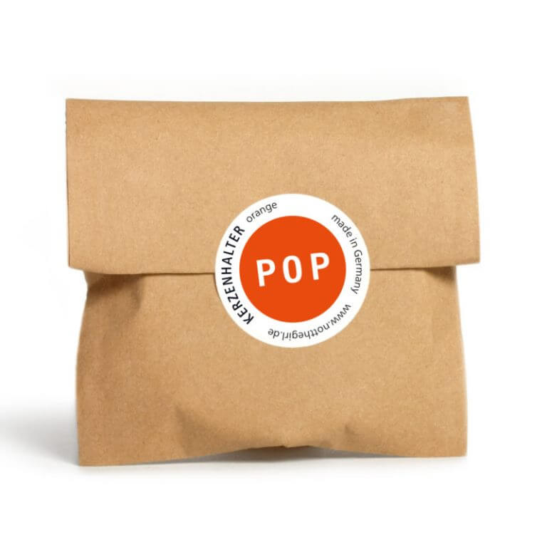 Verpackt wird POP in einer umweltfreundlichen braunen Naturpapiertüte mit Farbpunktaufkleber, der die jeweilige Farbvariante kennzeichnet.