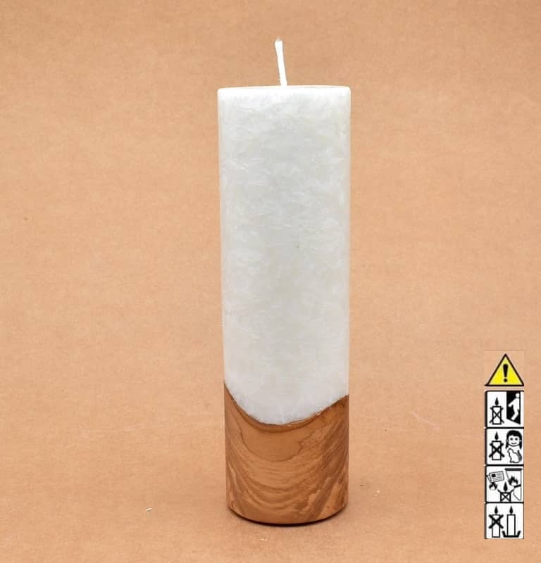 Liebliche Kerze mit Holz Unikat Rund 60 x 200 mm mit Docht Nr.: 4
