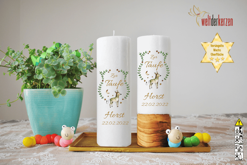 - als Taufkerze mit Holz für die freie Taufe