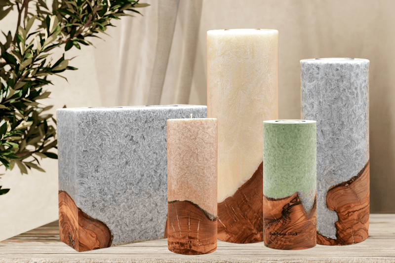 Farbige Kerzen mit Holz - Kreative Geschenkideen