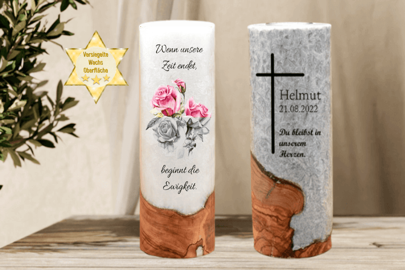 Trauerkerzen und Gedenkkerzen mit Holzelement