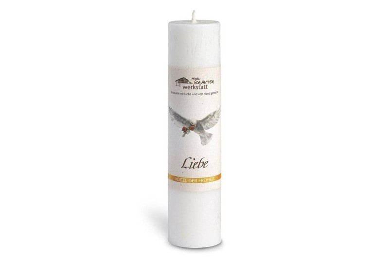 Liebe "Vögel der Freiheit" Allgäuer Heilkräuterkerzen Farbe weißLiebeLiebe ist die höchste unter den drei Tugenden.Sie ist die stärkste Kraft im Universum, die alles verbindet und verwandelt.Liebe ist das Gefühl der Zuneigung, des Wohlwollens und des Mitgefühls für Andere und insbesondere auch für sich selbst.Denn nur wer sich selbst annimmt, kann auch anderen geben.Sie ist schließlich die Erweiterung des Bewusstseins Über das eigene Ich hinaus auf das Ganze hin.Liebe motiviert den Menschen zu einem spirituellen Leben, das von Empathie, Barmherzigkeit, Gerechtigkeit und Frieden geprägt ist. Sie befähigt den Menschen zu einem uneigennützigen Leben, das von Dienst, Geben und Teilen geprägt ist.Liebe ist die Hingabe an das Leben selbst.Rose und Weißdorn öffnen unser Herz für die Liebe und stärken das Herzchakra.Der immergrüne Rosmarin symbolisiert die Begeisterung füreinander und die Lebenskraft, die er aus der Sonnenkraft schöpft.Die Rosennote spiegelt sich auch im zarten Duft wider.Hersteller-Artikel-Nr.: 8442